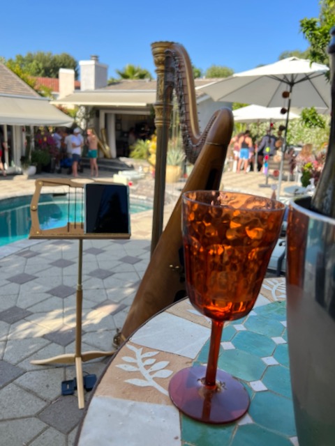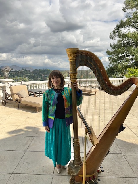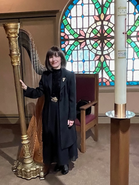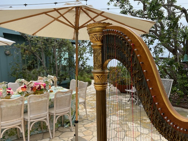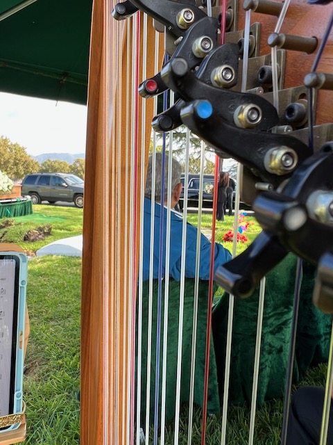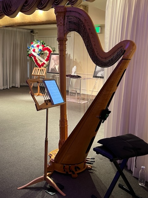 graveside, but indoors, I can play my golden antique pedal harp.)