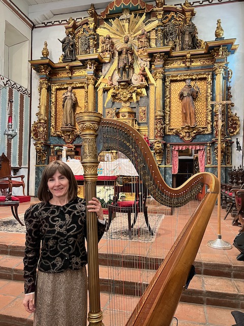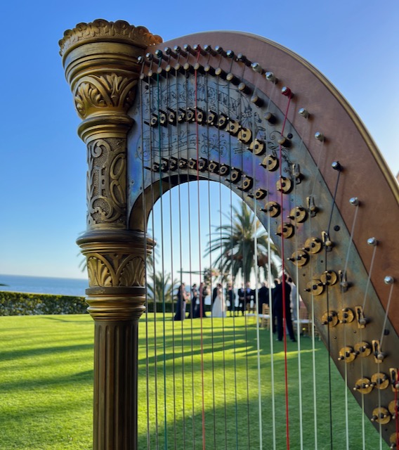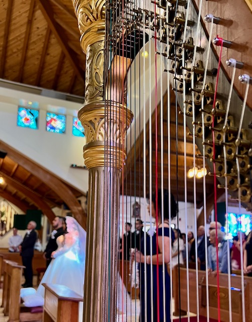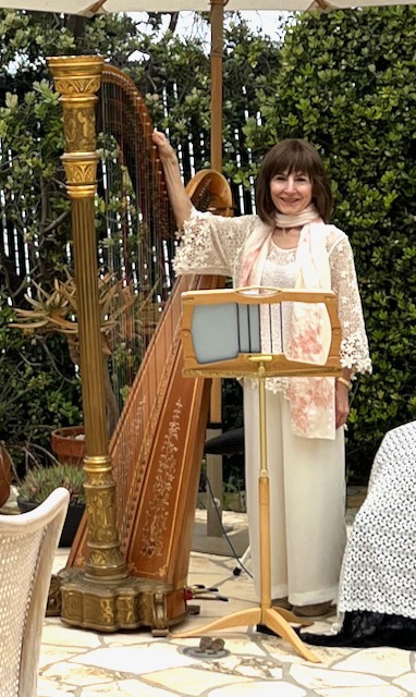 graveside, but indoors, I can play my golden antique pedal harp.)