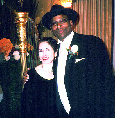 Harpist Stephanie Bennett with record producer Terry Lewis at his wedding January 2005