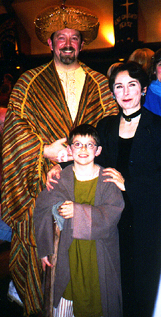 Harpist Stephanie Bennett (R) with Scott Anthony as King Kaspar and Micah Anthony as Amahl